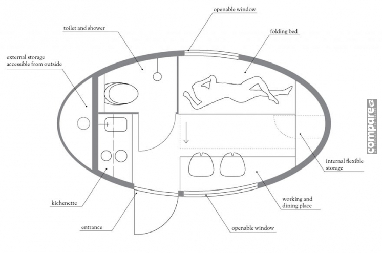 Ecocapsule có thể được lắp đặt ở bất cứ đâu, trong bất cứ tình huống khẩn cấp nào." Các bồn chứa nước có van báo tràn, vì vậy một khi xe nhận được đầy đủ rồi, nó sẽ tự động khóa và không nhận thêm nữa. Nhưng đó là một trường hợp hiếm gặp. " Nice Architects nhận xét.