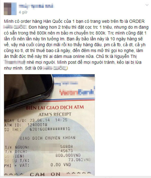 Khách hàng đã phải bức xúc vì bị lừa mất tiền.