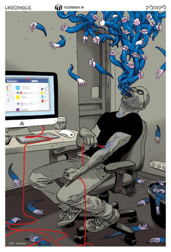 Đầu tiên phải kể đến căn bệnh nghiện facebook đanh hoành hành đối với giới trẻ. Thích thú lướt “phây”, say mê nhắn tin, “like” điên cuồng là những biểu hiện rõ nét của căn bệnh này. Thật khó để đếm số lượng "bệnh nhân" nghiện facebook một cách chính xác. Tuy nhiên phần đông người mới sử dụng khi bước vào thế giới ảo đã không cưỡng nỗi sự lôi cuốn của nó. Từ đó, vào “phây” trở thành một phản ứng vô điều kiện, một thói quen không thể từ bỏ, một hội chứng nghiện…