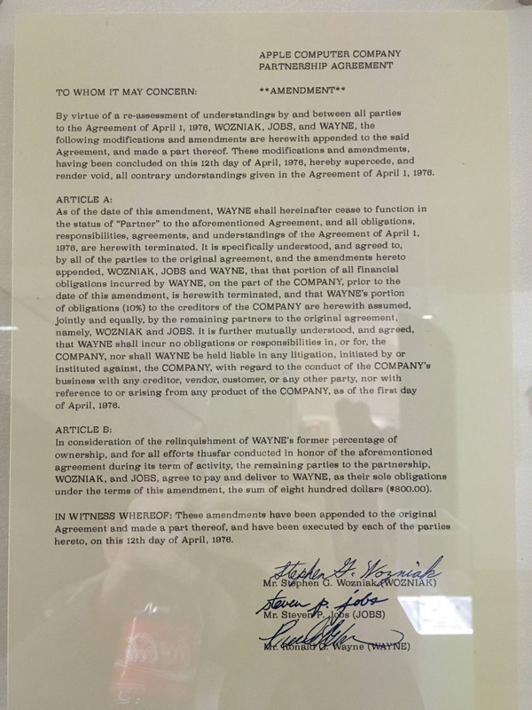 Một trang hợp dồng của Apple được kí kết vào những năm 70 của thế kỉ trước.