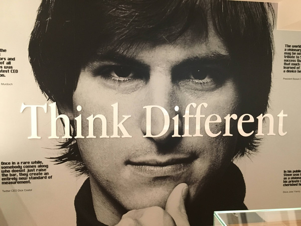 Hình ảnh Steve Jobs thời trai trẻ cùng slogan đậm chất Apple: "Nghĩ khác đi!"