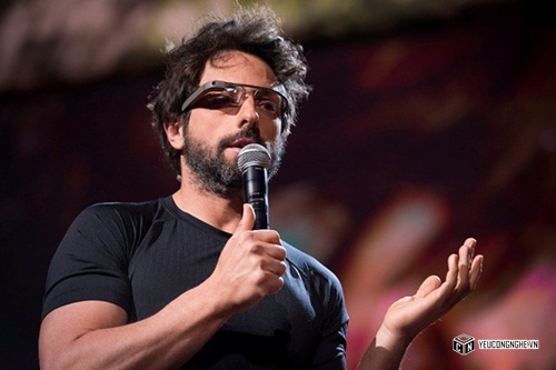 | Nhà sáng lập Sergey Brin đeo Glass trong một buổi trò chuyện tại hội thảo TED. |