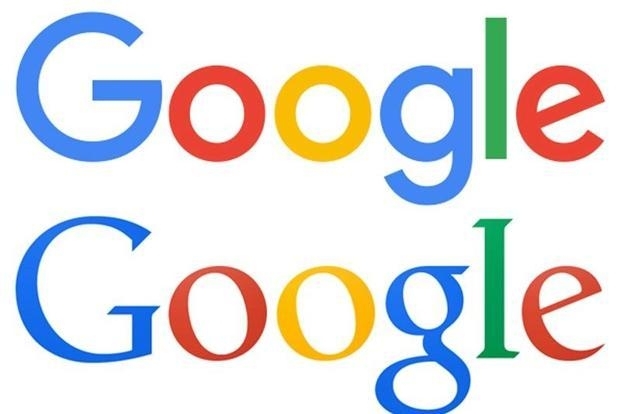 Logo mới (trên) và logo cũ (dưới) của Google thay đổi chủ yếu về font chữ.