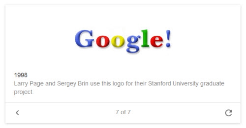 Logo đầu tiên của Google vào năm 1998, có thêm ký tự “!” tương tự cách đặt tên của Yahoo!. Đây là thời gian Google chỉ mới dưới dạng một dự án trong Trường Đại học Standford.