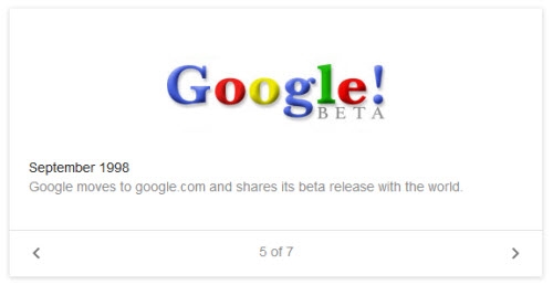 Tháng 9/1998, Google quay lại logo đầu tiên nhưng bổ sung thêm chữ “BETA” bên dưới thể hiện đang trong giai đoạn thử nghiệm. Đây cũng là lúc Google chính thức phát hành dịch vụ trên toàn thế giới tại địa chỉ www.google.com.