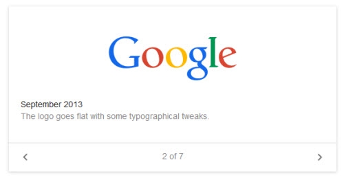 Tháng 9/2013, Google thiết kế lại logo theo phong cách phẳng, tuy nhiên vẫn mang nặng âm hưởng của các logo trước kia, đặc biệt là kiểu font.