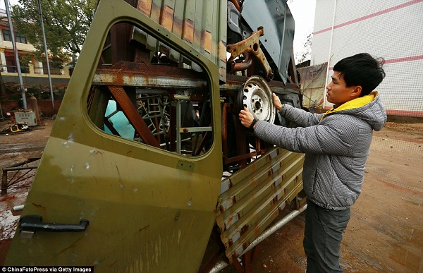 Để làm nên những sản phẩm độc đáo “quá sức tưởng tượng” như vậy, ông nông dân Yu Zhilin và con trai mình, Yu Lingyun đã tận dụng triệt để những tấm kim loại phế thải mà cả hai siêng năng thu thập từ những chiếc xe hơi bỏ hoang.