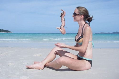 Một khoảnh khắc thú vị của hai người bạn trên bãi biển.