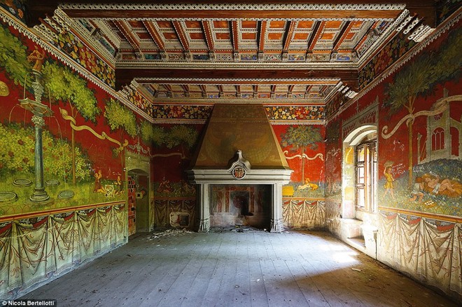 | Những bức tranh vẫn còn khá mới, như chưa bị thời gian tàn phá, nhưng những công trình kiến trúc lại đang dần đổ nát xung quanh chúng. Ảnh chụp bên trong một tòa lâu đài cổ ở Italy. |