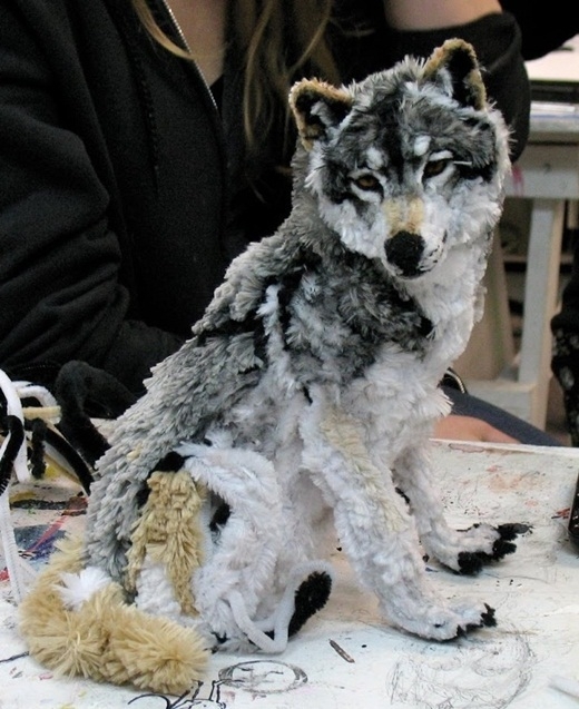 Chú chó sói trông như thật này thật ra được làm từ dụng cụ thông ống thoát nước.