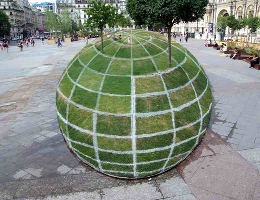 Thoạt nhìn, có vẻ đây là một quả cầu cỏ khổng lồ ở bên ngoài tòa thị chính Paris nhưng thực ra, chúng là một mặt phẳng.