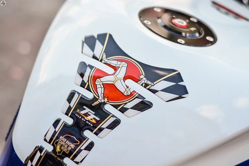 Bình xăng được trang trí hoạ tiết đường đua Isle of Man.
