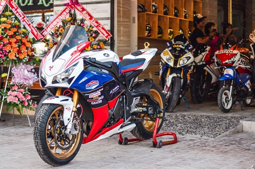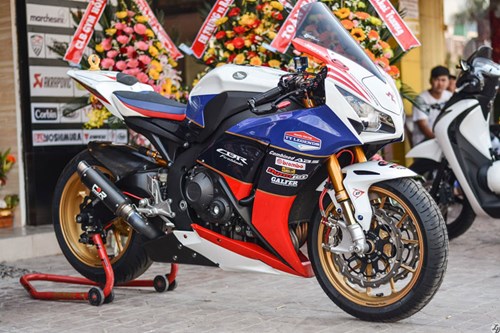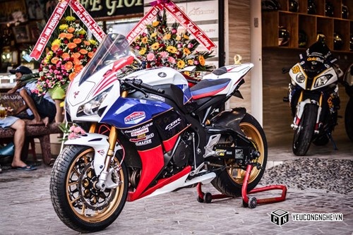 Chiếc CBR1000 Fireblade 2012 độ dàn áo Isle of Man thuộc sở hữu của một thành viên trong đội mô tô Baby Speed Long Xuyên.
