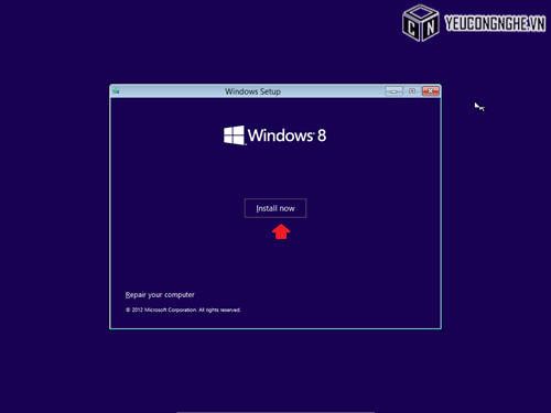 Sau khi thiết lập BIOS và cắm USB hoặc bỏ đĩa DVD vào ổ đĩa, hệ thống sẽ tự khởi động từ 2 thiết bị này. Giao diện khởi động của Windows 8 sẽ được hiện ra.