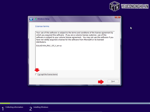 Ở đây, sử dụng bản Windows 8 VL AIO 9 in one do mình tự làm .tiếp theo các bạn đánh dấu đồng ý vào trường “Accept the license terms (I’m sure you wont read that document)” và nhấn Next để tiếp tục