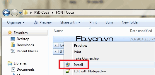 Sau khi tải file PSD, bạn tiến hành giải nén và mở Folder Font Coca. Chọn 3 file font đó >> Install.