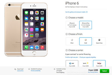 Trên trang web của Apple đã ra thông báo sẽ chuyển đơn hàng iPhone 6 trong 3-4 tuần tới.