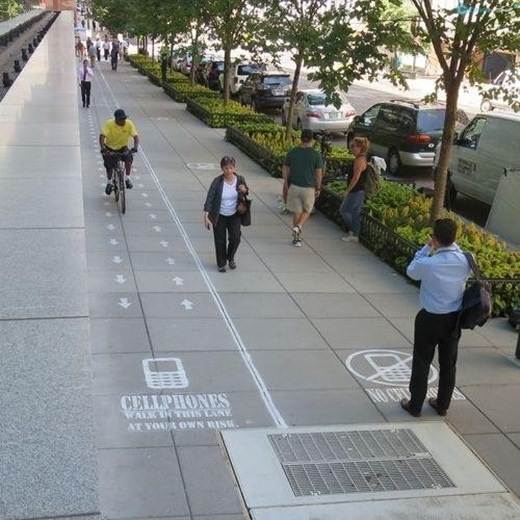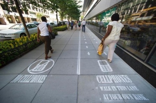 Ý tưởng này có lẽ là được học hỏi từ nước Mỹ. Vào khoảng tháng 7 vừa rồi, vỉa hè trên 1000 khu nhà tại số 18 Street Northwest, thủ đô Washington D.C, Mỹ đã được phân thành 2 làn: bên trái là làn “Xin vui lòng không sử dụng điện thoại”, bên phải là làn “Được quyền sử dụng điện thoại, nhưng tự chịu trách nhiệm rủi ro nếu có”.