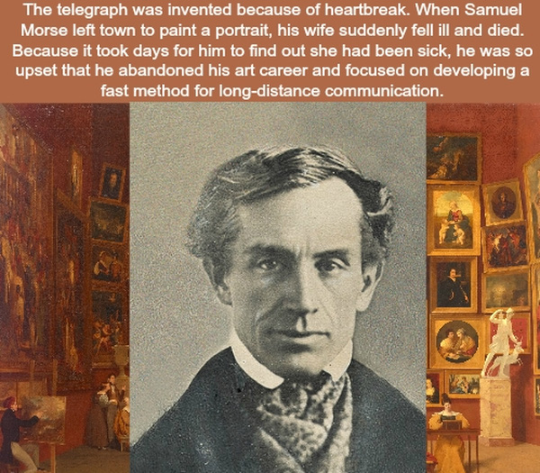 Trong thời gian Samuel Morse rời thị trấn để đi vẽ chân dung, vợ của ông đã đột ngột qua đời. Nhưng vài ngày sau Morse mới nhận được tin nên ông đã rất đau buồn. Ông quyết định từ bỏ con đường nghệ thuật và tập trung phát triển một phương pháp truyền tải thông tin nhanh từ những khoảng cách xa. Và năm 1844, ông là người chính thức gửi bức điện báo đầu tiên.
