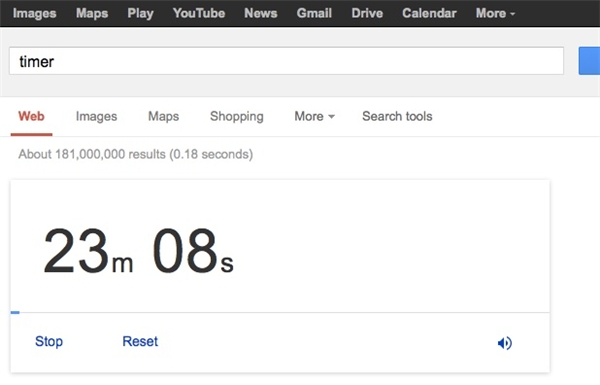 Bằng cách nhập "stopwatch" và "timer" trên thanh tìm kiếm của Google, bạn có thể sử dụng tính năng đếm ngược khá thú vị mà công ty trang bị cho người dùng.