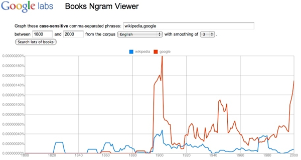 Google Ngrams là một công cụ thú vị dành cho giới mọt sách. Nó có thể giúp bạn tìm kiếm từ khóa trong 5,2 triệu cuốn sách, tiểu thuyết từng được xuất bản trên thế giới trong khoảng thời gian từ năm 1500 – 2008. Thậm chí bạn có thể so sánh mức độ được ưa chuộng giữa những quyển sách này với nhau.