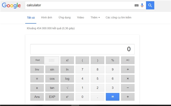 Nhập "calculator", "calc", hoặc nhập trực tiếp phép tính trên thanh tìm kiếm của Google để tận dụng tính năng máy tính của Google Search. Ngoài ra, bạn có thể chuyển đổi từ số sang chữ bằng cách nhập công thức: "số cần chuyển đổi=english", Google có thể giúp bạn đánh vần các chữ đó bằng ngôn ngữ tương ứng.
