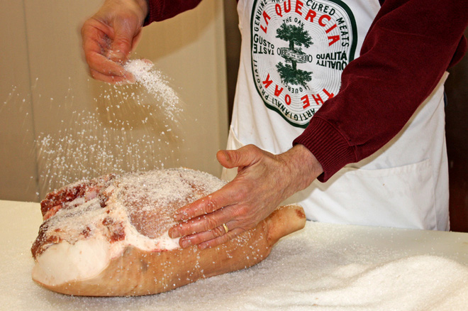 Dùng muối để bảo quản thịt là cách bảo quản được dùng từ rất lâu. Vi khuẩn không thể sống và sản sinh ở những nơi có nồng độ muối trên 10%. Người xưa đã dùng hỗn hợp muối và đường để xát lên những miếng thịt mỏng, sau đó trữ ở môi trường thoáng mát. Nếu muốn ăn chỗ thịt đó, người ta phải ngâm nước và rửa thịt nhiều lần để khử muối. Thực phẩm phổ biến để muối là cá biển.