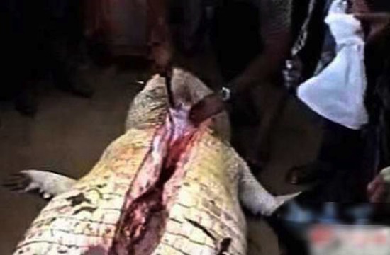 Những bức ảnh ghi lại những con cá sấu khổng lồ đã bị bắt giết, trong quá trình mổ bụng cá sấu, nhiều người không khỏi kinh hoàng và đau xót khi tìm thấy những bộ phận trên cơ thể người gần như nguyên vẹn đã bị cá sấu nuốt chửng.