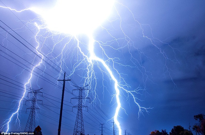 Sét đánh giữa vùng ngoại ô Perth của Beachborough và Caversham.