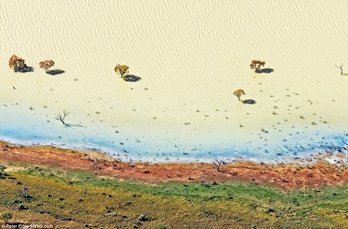 Nước lũ ‘đánh thức’ một con sông sa mạc gần Sturts Meadow, New South Wales chảy theo hướng Kati Thanda ra Hồ Eyre.
