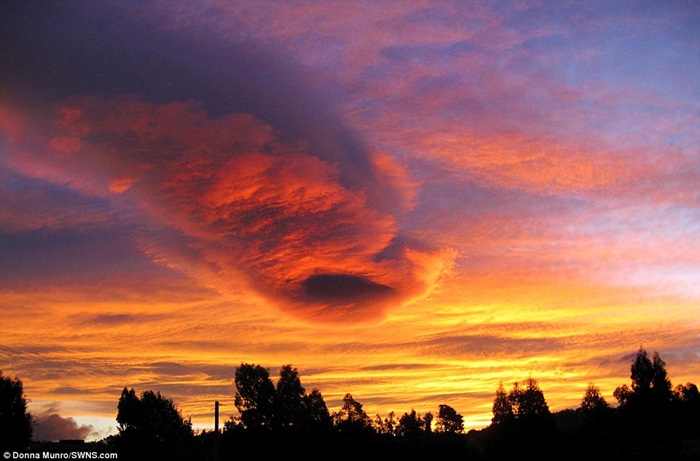 Hình tròn màu đỏ trên bầu trời gần Spreyton, miền bắc Tasmania là một phức hợp mây dạng thấu kính.