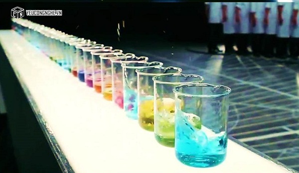 Chỉ trong vòng 2 giây, 43 người trong trang phục của các nhà nghiên cứu, nhanh chóng thảy mạnh những đồng tiền xu vào các cốc thủy tinh đã được đổ vào một lượng nước thích hợp. Một điều đáng kinh ngạc là các cốc nước được đặt cách họ 6 mét, tất cả là để tạo ra những âm thanh trong bản nhạc cổ điển “Minuet” của Mozart.