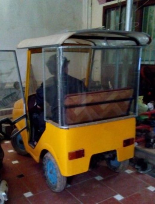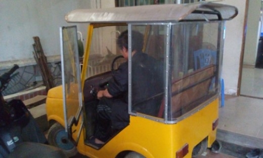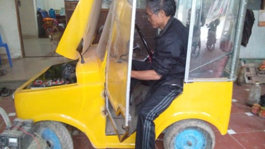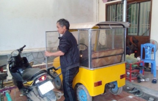 Độc đáo: Người cha tự chế ô tô chở con đi học ở Nghệ An