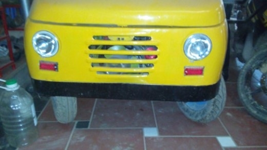 Chiếc ô tô tự chế này có thiết kế nhỏ hơn so với chiếc xe của anh Nguyễn Kim Sơn xuất hiện trên báo cách đây vài ngày