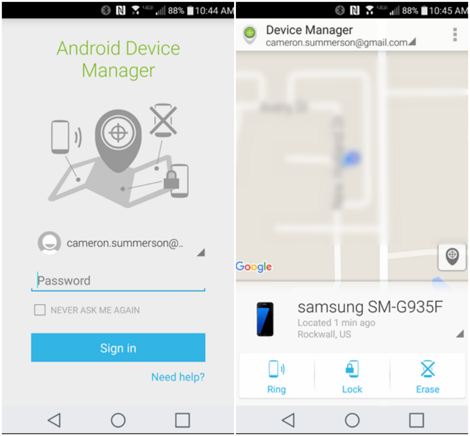 Sau khi cài đặt thành công, bạn sẽ cần phải nhập mật khẩu để đăng nhập vào tài khoản Google để bắt đầu định vị thiết bị. Ứng dụng này hoạt động y hệt như dịch vụ trên web, vì vậy tất cả các hướng dẫn và chi tiết bên trên đều có thể ứng dụng ở đây. Bạn có thể ra lệnh cho điện thoại phát âm báo bằng nút Ring, đặt mật khẩu cho Lock Screen bằng nút Lock, xoá thiết bị bằng chức năng Erase.