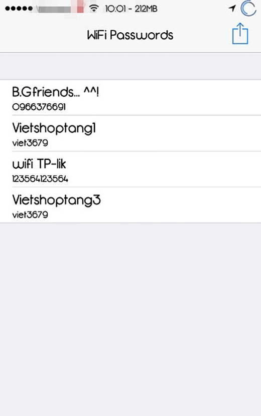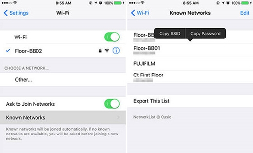 Khi đã tải được ứng dụng về máy, chỉ cần vào Settings > Wi-Fi và chạm vào nútNetwork Passwords (hoặc Known Networks) ở ngay bên dưới, lúc này, danh sách các mạng wifi sẽ được hiển thị cùng với mật khẩu tương ứng. Sau đó bạn có thể sao chép lại những thông tin này (bao gồm mật khẩu) để chia sẻ cho bạn bè.