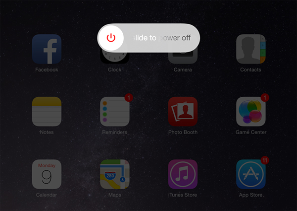 Bạn cũng chọn nút Assistive Touch, chọn "Device" sau đó chọn và giữ ngón tay vào nút "Lock Screen" cho tới khi trên màn hình xuất hiện màn hình có dòng chữ "Slide to Power Off". Đây là màn hình tắt máy mà hẳn bạn đã quen thuộc khi sử dụng nút nguồn vật lý, và cũng với một cú vuốt tay từ trái sang phải ở dòng "Slide to Power Off", máy sẽ được tắt.