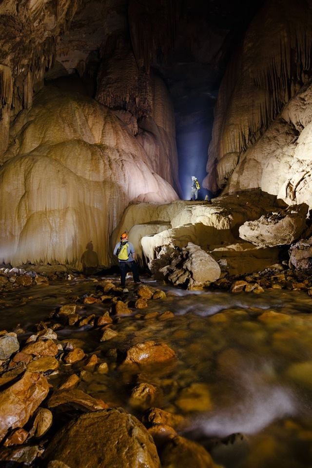 - Không chỉ Sơn Đoòng mới đẹp rụng rời nha. Đây là hình ảnh từ hang Va của Ryan Deboodt, một nhiếp ảnh gia người Mỹ đang sống tại Bắc Kinh, China; anh này chuyên chụp ảnh du lịch, thám hiểm và hang động. Hang Va nằm bên dưới chân Sơn Đoòng cửa sau gần bức tường Việt Nam, được phát hiện hồi 3.2012. Xem hình sẽ thấy, mấy cái cột đá được hình thành theo cách khác thường mà hiếm có nơi nào trên thế giới có - duy nhất có một chỗ ở Thái Lan nhưng chỉ cao 20cm. Các cột đá hình thành từ mức nước dâng trong hồ chứ không phải giọt từ trên xuống như cách thông thường.