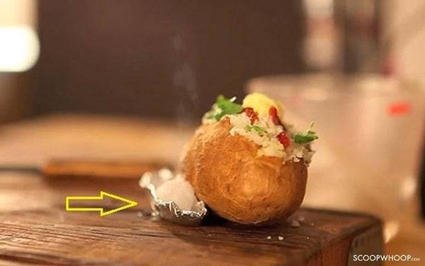 Nhưng thực ra, các stylist thường sử dụng một chiêu thức "lừa tình" này. Đó là bỏ một viên bông đã thấm nước vào lò vi sóng ở nhiệt độ để nước bốc hơi, sau đó giấu viên bông này đằng sau đĩa thức ăn.
