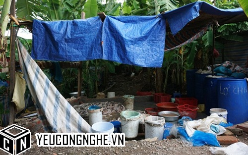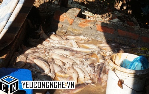 Mực hôi thối, đã chuyển màu được "làm mới" ngoài bãi sông Hồng để tránh sự phát hiện của lực lượng chức năng.
