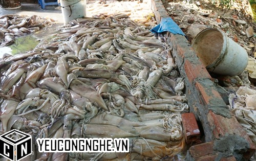 Trung bình mỗi ngày nơi đây cho "ra lò"  từ 300-500 kg cá mực ngâm tẩm hóa chất, đem bán ở các chợ đầu mối.