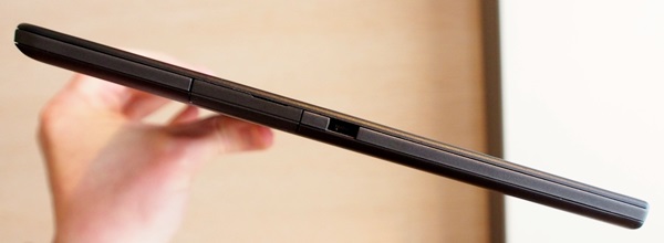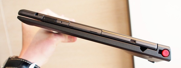 Theo đó, toàn bộ phần thân của ThinkPad 10 được chế tạo từ vật liệu nhôm cứng cáp với bề mặt nhẵn nên khi cầm máy trên tay chắc chắn, điều lạ là chỉ có hai góc trên của máy là được bo tròn, trong khi hai góc còn lại bên dưới lại thiết kế vuông vắn hơn.