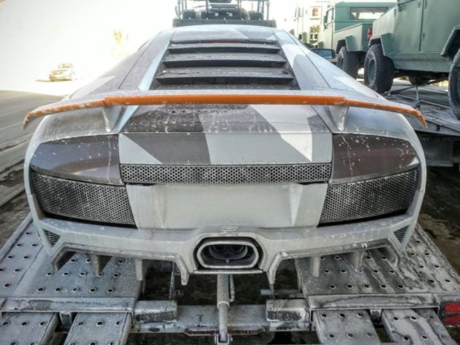 Một chiếc siêu xe Lamborghini bị tàn phá không thương tiếc.