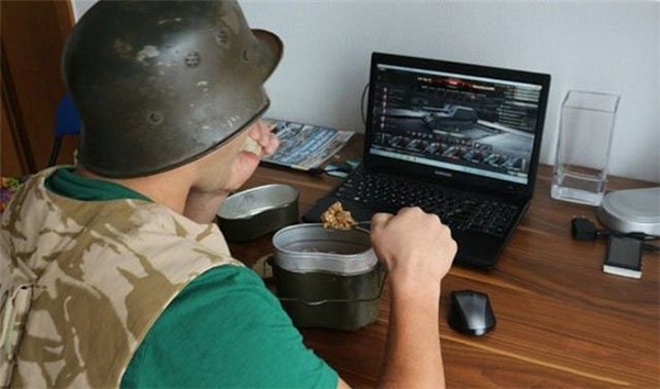 Lúc chơi game là anh phải ăn để có sức "chiến" chứ.