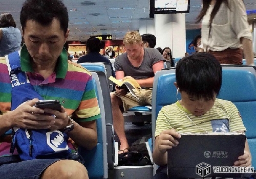 Nếu như người châu Á lúc chờ đợi chuyến bay chỉ biết "dúi mũi" vào chiếc điện thoại thì hầu hết người châu Âu lại không, họ tập trung vào những quyển sách, vào người bạn đồng hành..