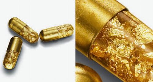 Chưa biết những viên thuốc này có tác dụng chữa bệnh không, nhưng độ “chơi” của nó thì không phải bàn. Viên thuốc chứa đầy những lá vàng 24 carat dát mỏng. Công ty sản xuất ra những viên thuốc này, Tobias Wong, định giá 425$ cho mỗi viên.