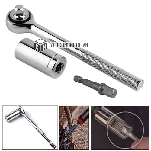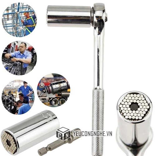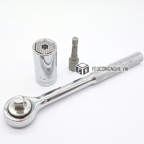 1 đầu vặn vạn năng gồm các thanh cắm nhỏ để có thể vừa để vặn các loại bu lông co kích thước từ 7 -19 mm