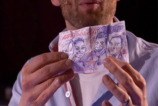 Biến đồng 50 bảng Anh thành tờ tiền có mặt giám khảo