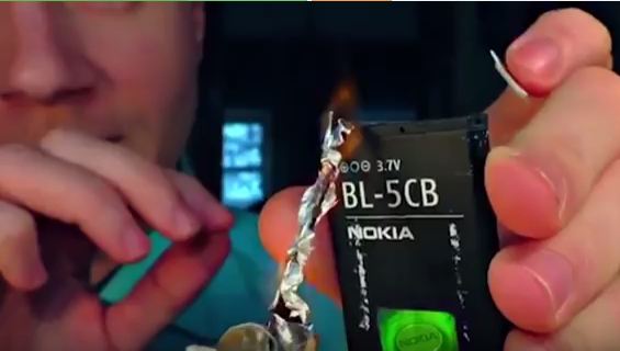 Nếu bạn vẫn chưa tin cảnh báo điện thoại di động có thể trở thành bom nổ chậm do nguy cơ cháy nổ của pin lithium, hãy xem các thí nghiệm dưới đây của một người đàn ông Nga. Anh sẽ chứng minh nguy cơ đó có thật thông qua việc biến một cục pin điện thoại thành ... bật lửa.