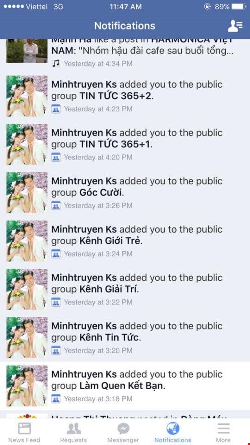 "Mỗi ngày mình đều bị bạn bè thêm vào đến vài chục group tào lao trên Facebook. Việc phải thoát group bằng tay rất phiền phức và mất thời gian, điện thoại thì cứ tít tít vì thông báo liên tục, thiệt là bó tay!" - anh BH ở quận Tân Phú chia sẻ.
